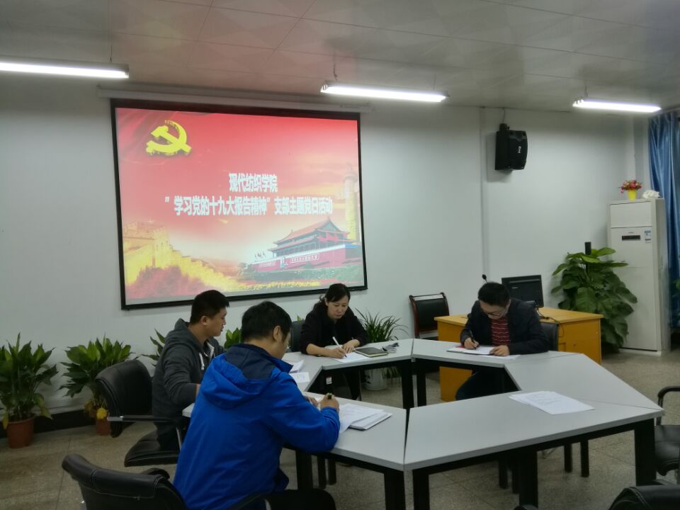学院教工党支部于10月23日上午8:30在8栋102召开学习“党的十九大报告精神”支部主题党日活动。会上奏唱了国歌,重温了入党誓词,诵读了党章第三章。
