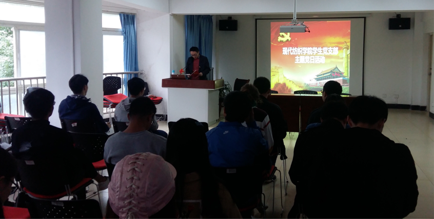 学院学生党支部于10月19日下午4:00在四栋三楼活动室召开学习“党的十九大报告精神”支部主题党日活动。会上奏唱了国歌,重温了入党誓词,诵读了党章第三章。