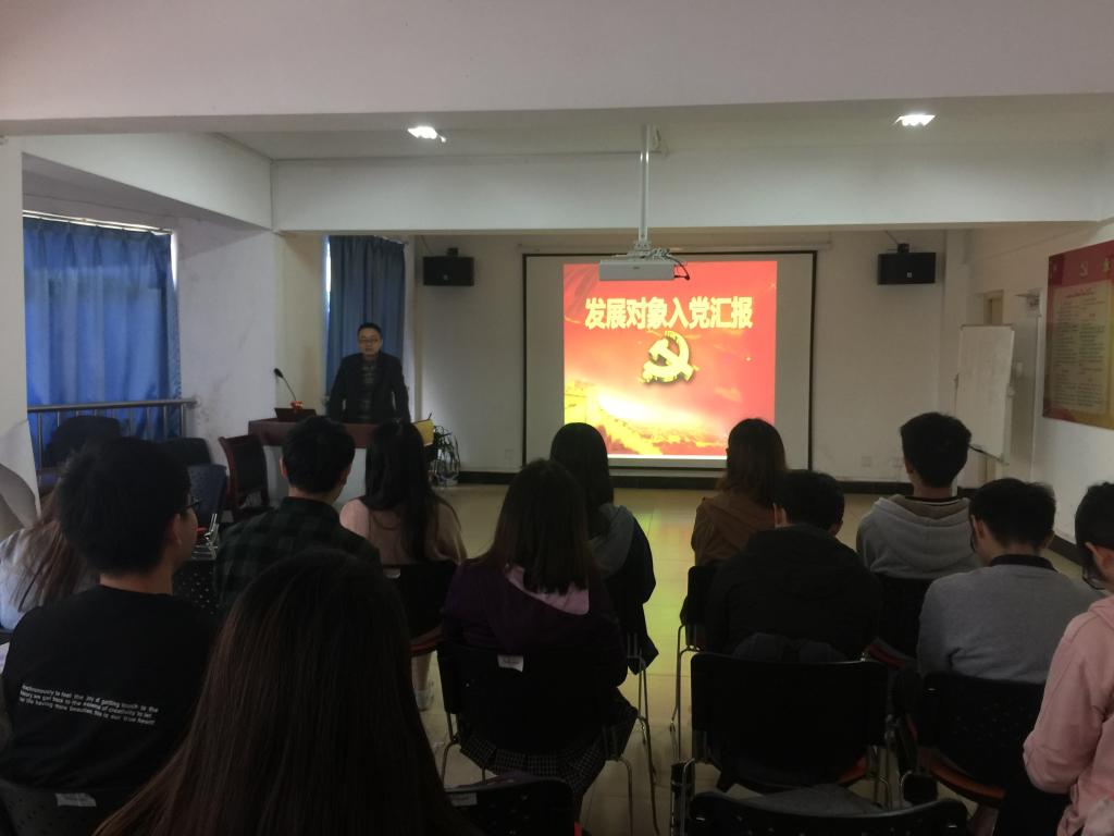 2017年11月16日,我院纺织学生党支部于书院三楼活动室组织开展了新一批党员发展对象汇报工作。谢超老师出席了会议,杨茹同志担任主持工作。