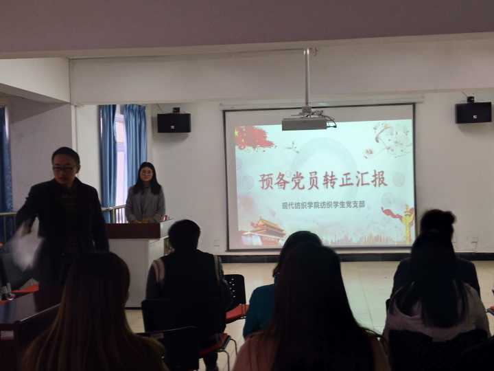 首先是转正党员上台对自己一年预备期的基本情况做转正汇报。四名党员分别从自己过去一年的思想上、学习上、工作上、生活上四个方面做了详细的汇报,每位转正党员汇报完后,依次有两名党员对其进行优缺点评价,然后由正式党员投票表决。四名转正党员表现优异,得到了一致认可,都全票通过。