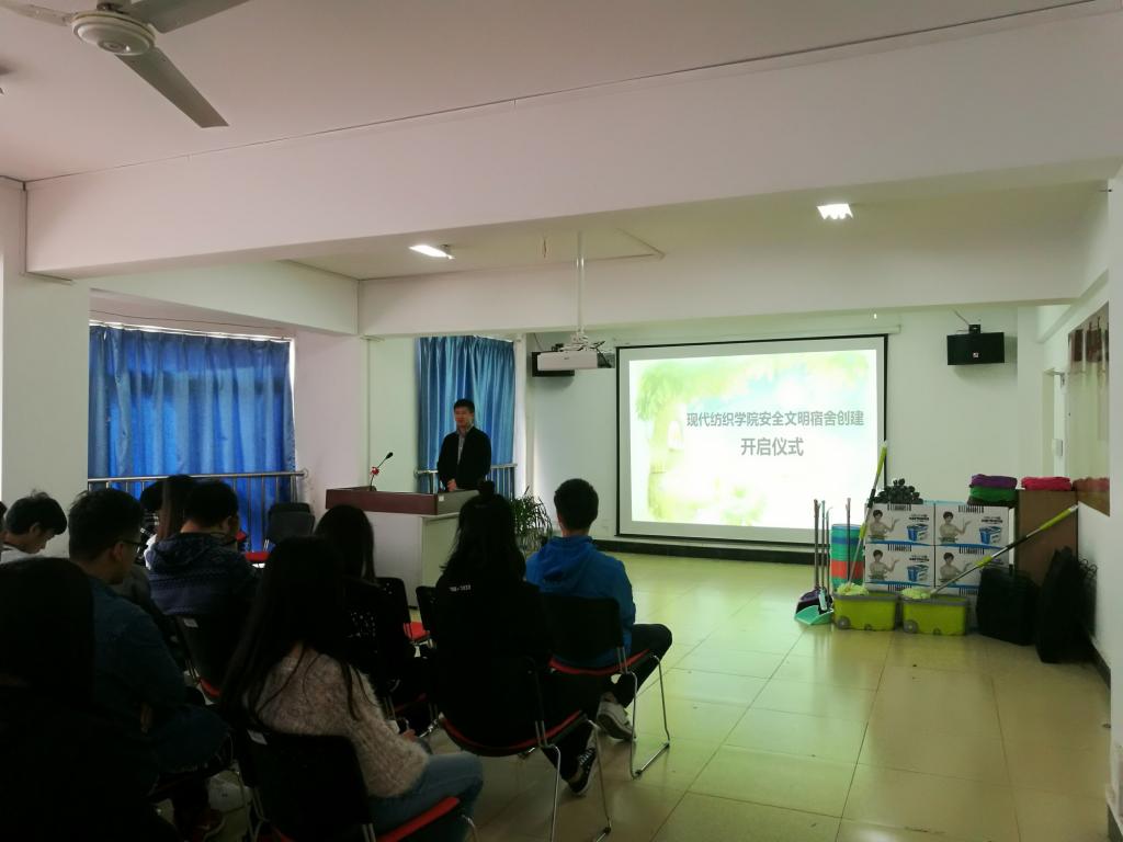 宿舍是校园生活的驿站,是我们的精神家园,是构建和谐校园的重中之重。俗话说,“宿舍是我家,一切靠大家”,拥有健康文明的宿舍文化,创建安全文明的宿舍是我们共同的责任与义务。为切实做好宿舍工作,营造一个安全、文明、和谐、温馨的生活环境,2017年10月20日中午十一点于四栋男寝三楼活动室召开了安全文明宿舍创建启动仪式,本次仪式由郭老师主持,召集了各寝室的寝室长。