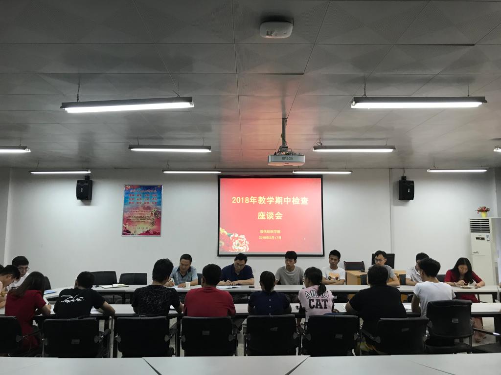5月17日下午,学院2018年上半年教学期中检查座谈会在8-I-102举行,24名学生代表参加座谈会,学院党总支书记、院长李德骏教授,常务副书记肖迪明参加会议。