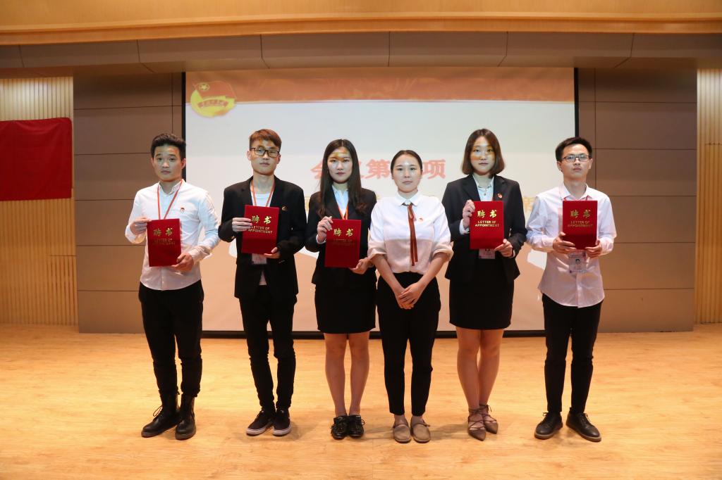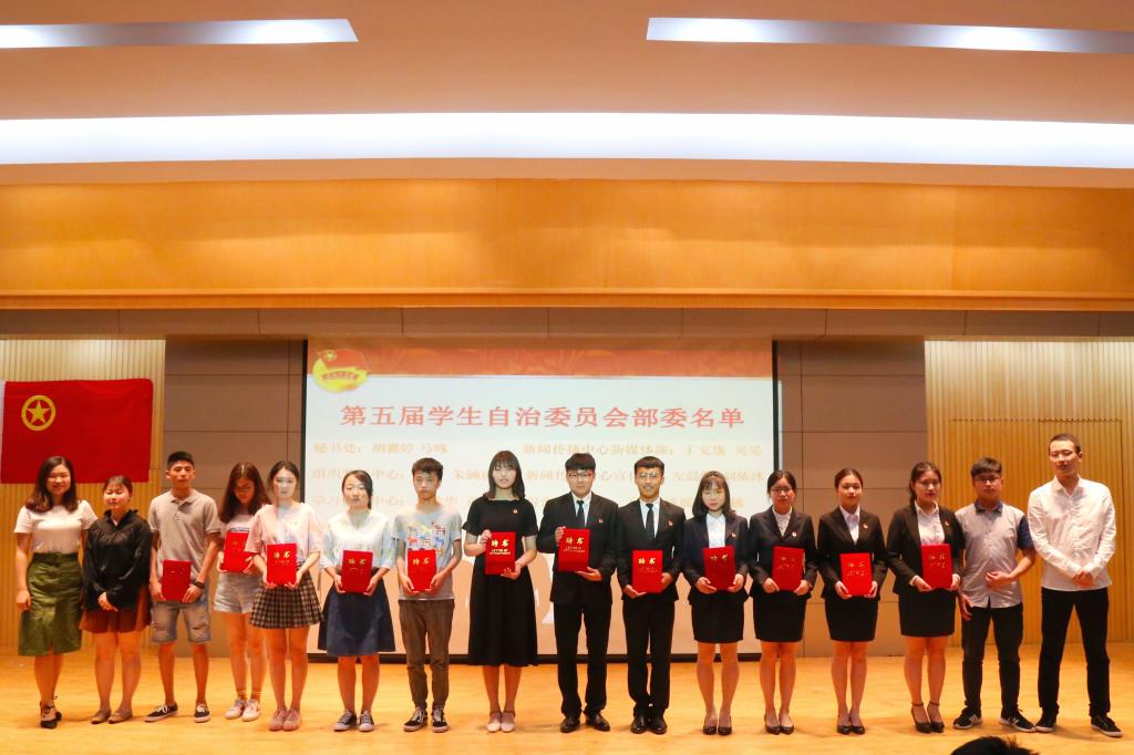 会议进行到第九项,为第五届学生自治会主席团及部委代表颁发聘书并且为今年五四评优中的获奖代表颁发证书。