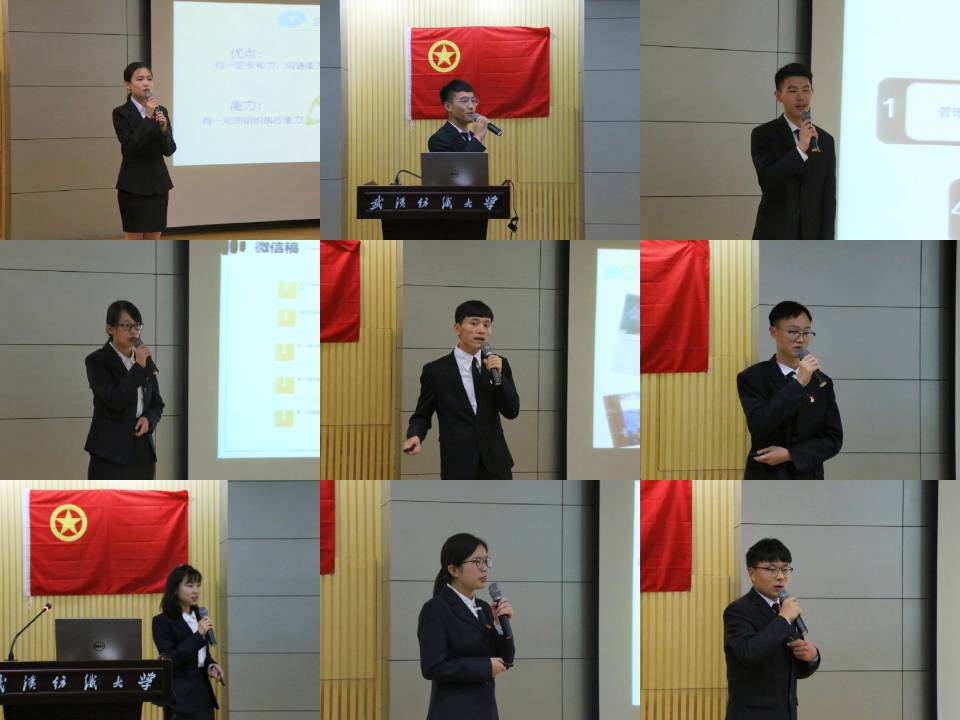 随后进行了主席团换届竞选,候选人陈义君,胡雅婷,李浩浩,李敏华,练瑶瑶,童世卓,王锐锋,夏锐,周子健以精致的PPT和自信的演讲赢来满堂喝彩,他们分别从自己的任职经历,对竞选职位的理解,想竞选理由及未来工作计划等方面进行了阐述。